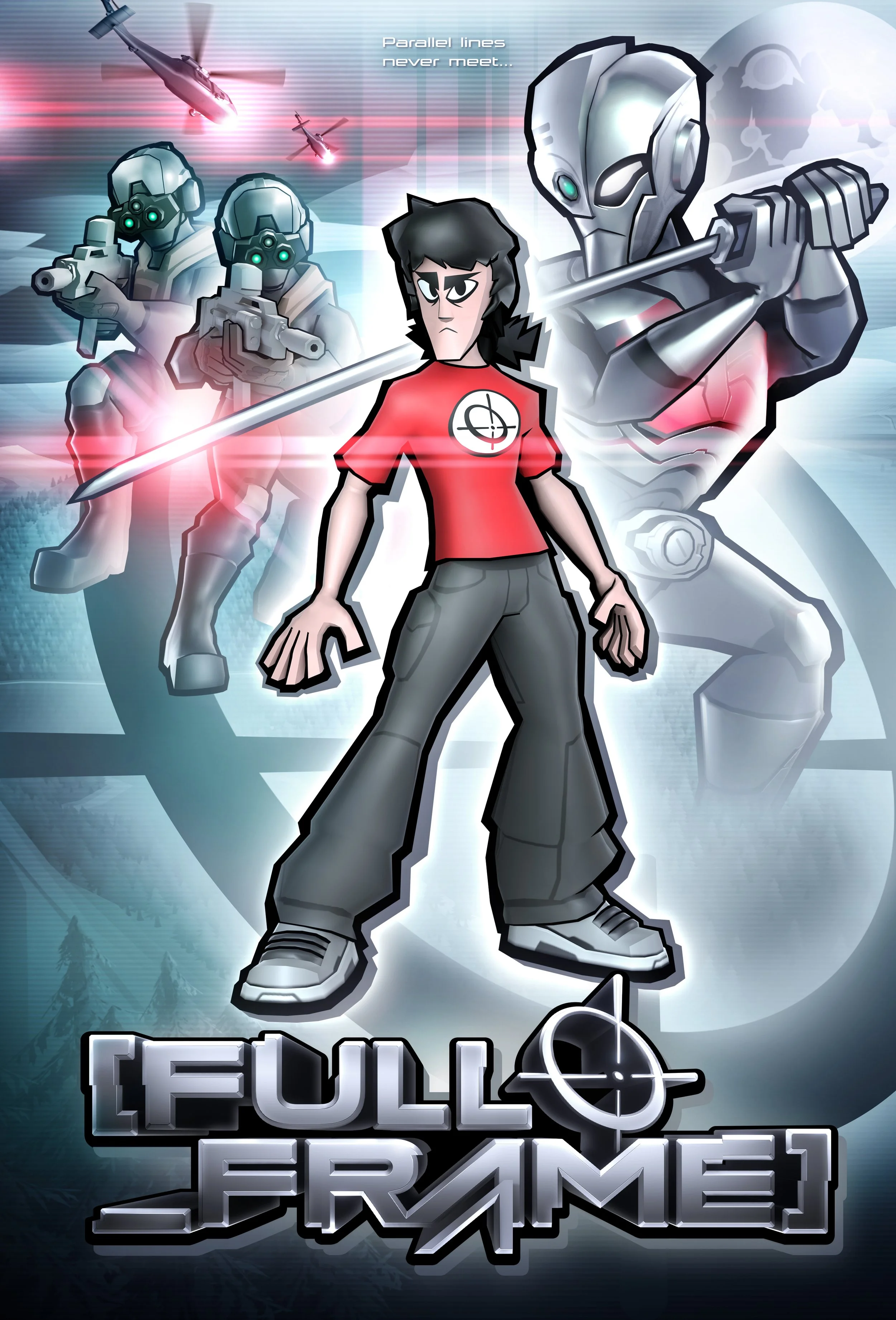 [FULL_FRAME] is an action cartoon about about a reclusive young man who becomes involved with a secret intelligence organization. Known simply as “Frame”, until now he has no identity and no allies.